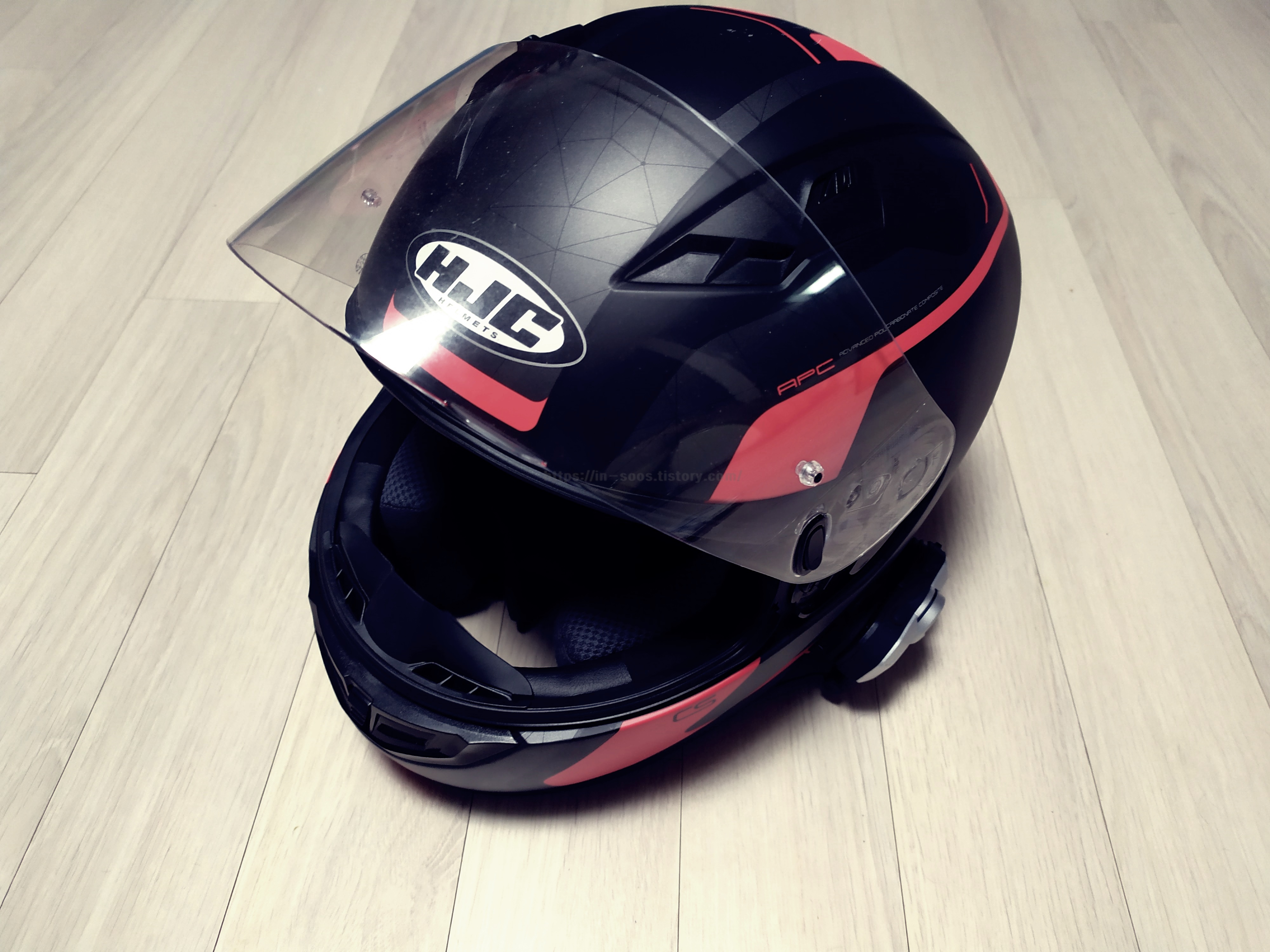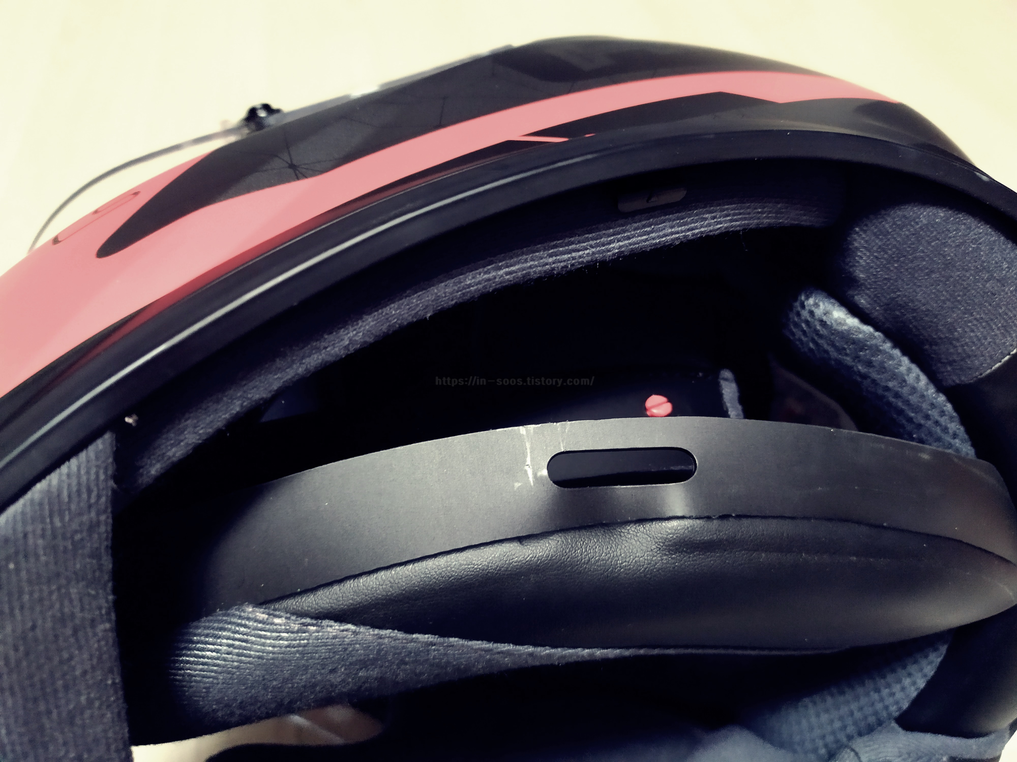비모토 V8 Vimoto V8 오토바이 헬멧 블루투스 이어폰을 장착할 홍진 CS-R3 헬멧입니다.