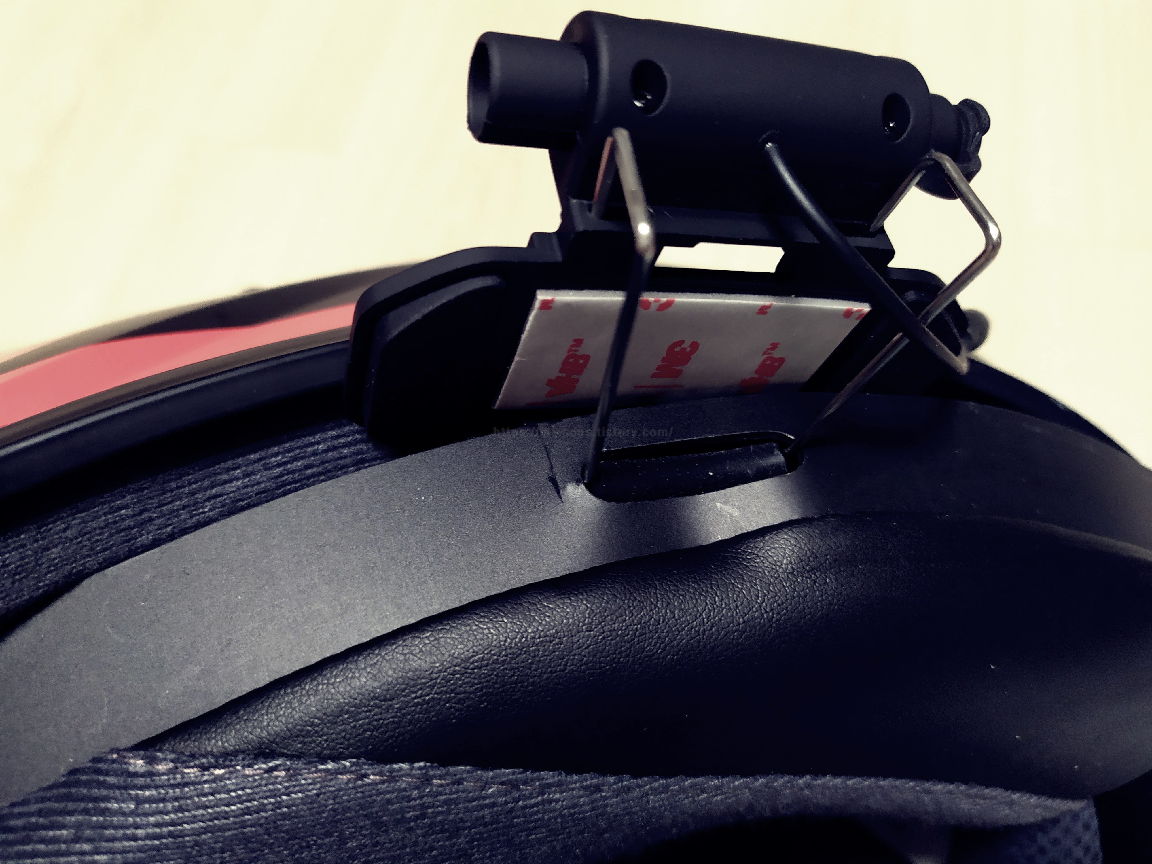 비모토 V8 Vimoto V8 오토바이 헬멧 블루투스 이어폰에 클램프를 끼우고 양면 테이프를 붙이면 이런 모양이 됩니다.