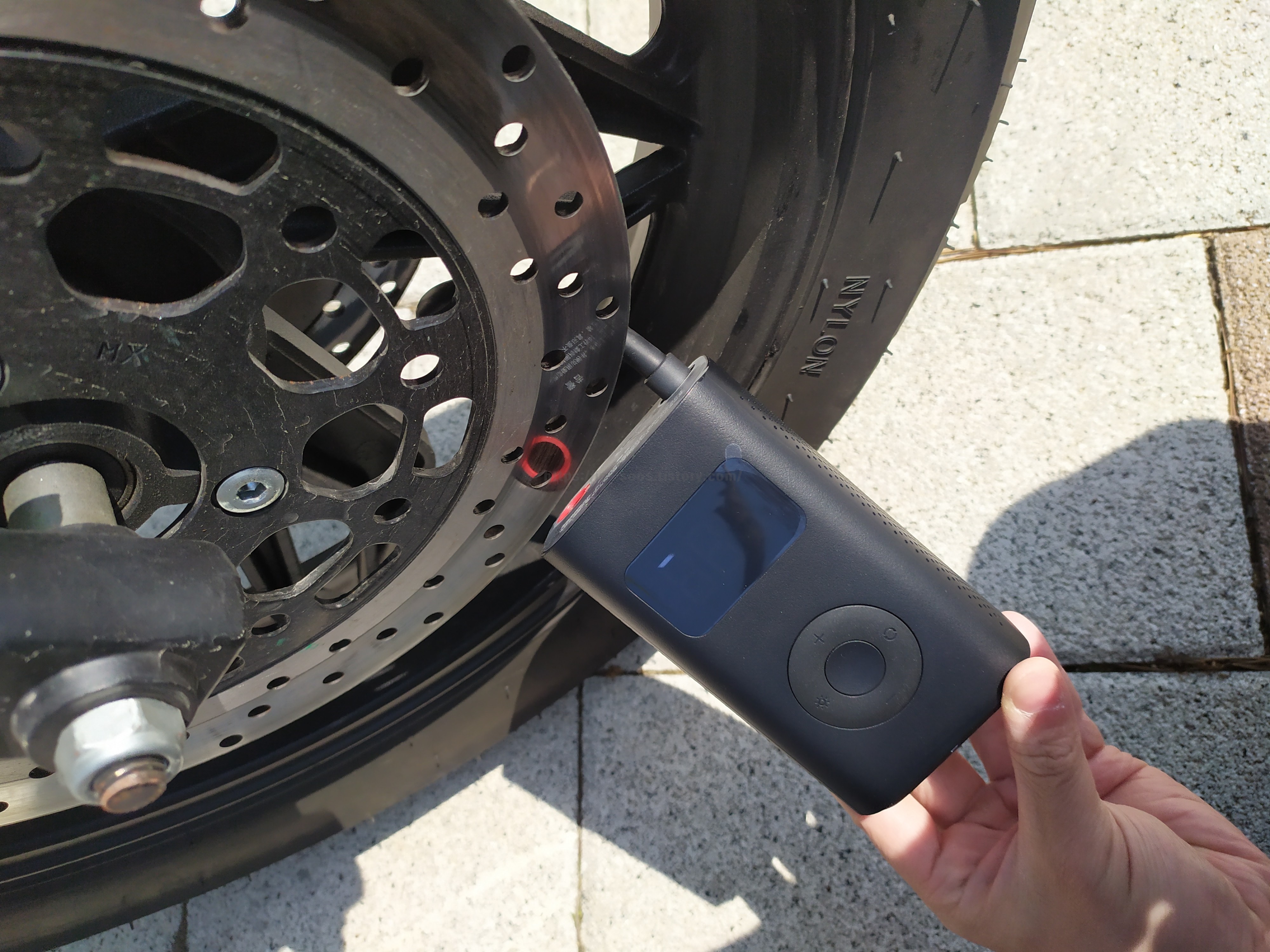 샤오미 미지아 에어펌프 공기주입기를 바로 오토바이 공기압 체크 및 공기 주입을 해보았습니다.